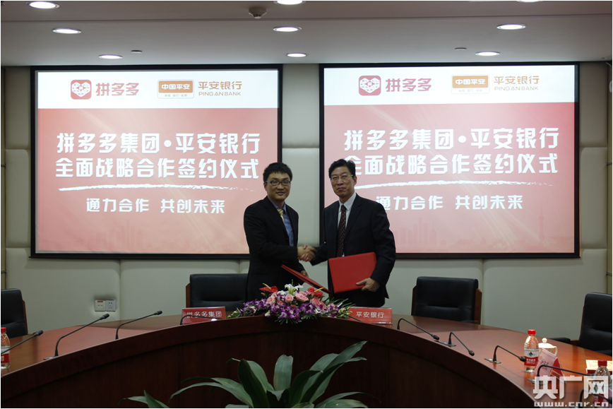拼多多董事長(zhǎng)黃崢表示,此次同平安銀行的戰(zhàn)略合作將深化雙方的信用大數(shù)據(jù)互換,建立商戶(hù)信用體系,致力于為消費(fèi)者提供更好的購(gòu)物體驗(yàn)。