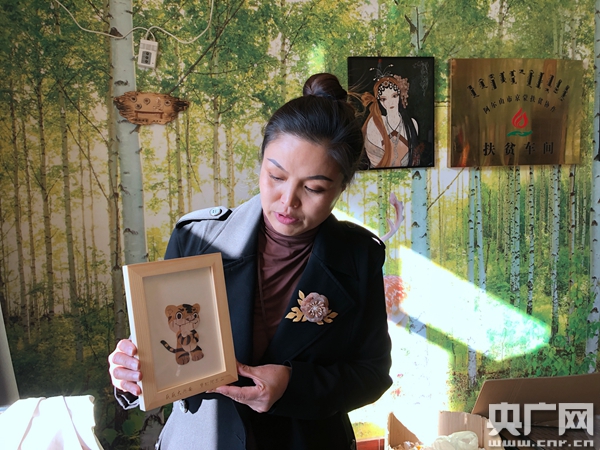 阿爾山市白狼鎮(zhèn)將樹皮畫作為當(dāng)?shù)靥厣糜渭o(jì)念品。樹皮畫非遺傳承人李艷紅開設(shè)了樹皮畫非遺扶貧就業(yè)工坊,面向建檔立卡貧困戶教授樹皮畫制作技藝。貧困戶閑暇時(shí)間參與樹皮畫手工藝品的制作,手藝比較成熟的,每月可獲得1000多元收入。