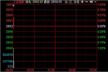 央廣網(wǎng)財(cái)經(jīng)北京12月16日消息 據(jù)經(jīng)濟(jì)之聲《交易實(shí)況》報(bào)道,今日開盤兩市漲跌不一,滬指報(bào)2953.81點(diǎn),漲0.39點(diǎn),漲幅0.01%,成交32.24億元;深成指報(bào)10486.69點(diǎn),下跌17.54點(diǎn),跌幅0.17%,成交19.07億元;創(chuàng)業(yè)板報(bào)16265.30點(diǎn),漲7.80點(diǎn),漲幅0.47%,成交2.98億元。