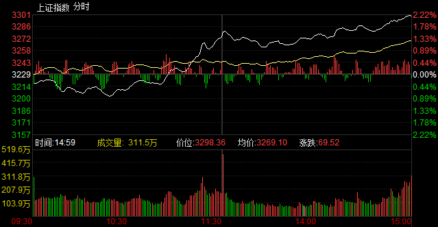 收盤:權(quán)重股井噴滬指漲2.15% 上望3300點(diǎn)