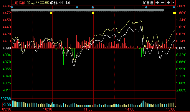 截至收盤,滬指報收4414.51點,漲16.02點,漲幅為0.36%,成交9630億元;深成指報收14743.2點,跌5.91點,跌幅為0.04%,成交7204億元。