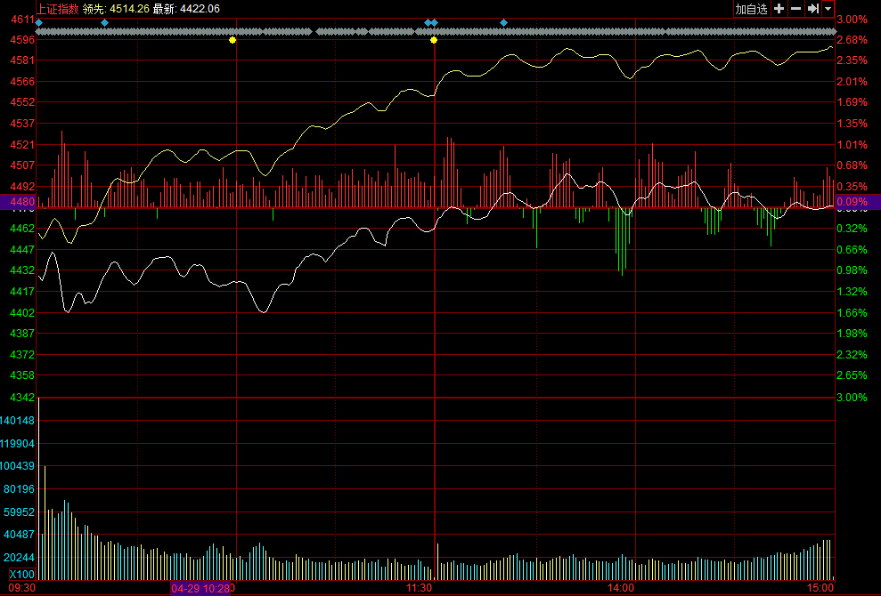 央廣網(wǎng)北京4月29日消息 據(jù)經(jīng)濟(jì)之聲《交易實(shí)況》報(bào)道,今日三大股指又出現(xiàn)分化走勢(shì),在經(jīng)歷周一大漲之后,滬市延續(xù)昨日跌勢(shì)早盤低開,但震蕩之后頑強(qiáng)企穩(wěn);深成指則較早走出調(diào)整格局上漲,漲幅超過1%;與大盤不同,今日創(chuàng)業(yè)板表現(xiàn)異常強(qiáng)勢(shì),一路沖高大漲逾4%,形態(tài)上走出陽包陰的態(tài)勢(shì)。