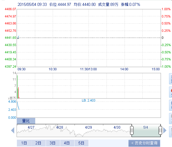 開盤:滬指微跌0.01%報4441點(diǎn) 京津冀板塊開盤漲逾3%