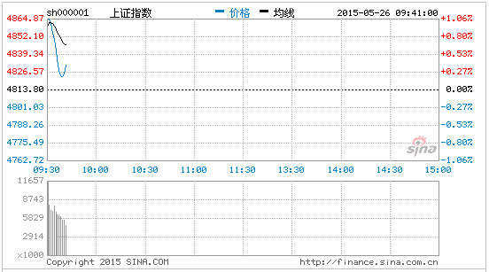 央廣網(wǎng)北京5月26日消息 據(jù)經(jīng)濟(jì)之聲《交易實(shí)況》報(bào)道,周二開(kāi)盤(pán),兩市大幅高開(kāi),滬指報(bào)4854.85點(diǎn),漲41.05點(diǎn),漲幅0.85%,深成指報(bào)16456.23點(diǎn),漲105.17點(diǎn),漲0.64幅%,創(chuàng)業(yè)板報(bào)3471.80點(diǎn),漲3.88點(diǎn),漲幅0.11%。