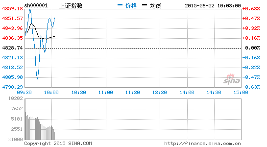 央廣網(wǎng)北京6月2日消息 據(jù)經(jīng)濟之聲《交易實況》報道,早盤,滬指高開沖高回落,金融股低迷,截止發(fā)稿滬指探底回升漲0.45%,報4850.31點,成交2382億,創(chuàng)業(yè)板報3813.16點,漲94.12點,漲幅2.54%,成交525.3億元。兩市逾百股漲停,7只次新股跌停。