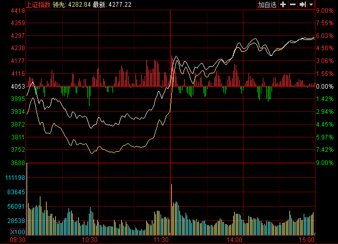 滬指逆轉(zhuǎn)漲5.53%劍指4300 逾200股漲停