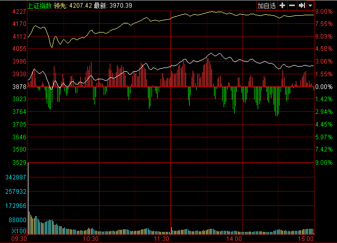 央廣網(wǎng)北京7月13日消息 據(jù)經(jīng)濟(jì)之聲《交易實(shí)況》報(bào)道,周一早盤(pán),滬深兩市雙雙高開(kāi),后滬指震蕩下跌盤(pán)中一度翻綠失守3900點(diǎn),10點(diǎn)04左右開(kāi)始強(qiáng)勢(shì)拉升,臨近午盤(pán)漲幅略微縮小,午后開(kāi)盤(pán),滬指強(qiáng)勢(shì)拉升站上4000點(diǎn),13點(diǎn)33左右沖高回落,最高上4030.20點(diǎn),之后震蕩回落失守4000點(diǎn),臨近盤(pán)尾,漲幅收窄,兩市逾1500股漲停,銀行股、保險(xiǎn)股、中字頭等權(quán)重股跌幅靠前,題材股爆發(fā),兩市成交過(guò)萬(wàn)億。