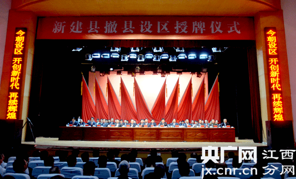 央廣網(wǎng)南昌9月28日消息(蔡馥蔚)28日,新建“撤縣設(shè)區(qū)”授牌儀式在南昌舉行。新建正式從“縣”的歷史,跨入“區(qū)”的時(shí)代。
