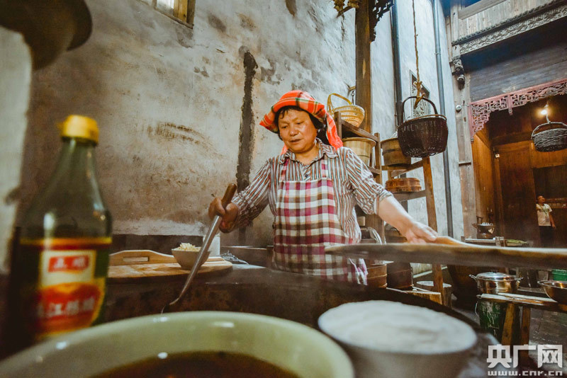 在婺源,篁嶺就是山鄉(xiāng)煙火人家。篁嶺的土灶煙火,一次次溫暖日漸蒼老的記憶。五桂堂的炊煙隨風(fēng)飄散,但這方土灶卻在游子心里刻上烙印。《一桌好飯》沒(méi)有天然氣,沒(méi)有高壓鍋,只有文火慢燉,慢工細(xì)活。一桌好飯,吃的是平日無(wú)處可尋的農(nóng)家土味,吃的是余音繞梁的鄉(xiāng)愁。曬秋大媽曹家弟表示,“做一桌好飯看到游客們吃得滿心歡喜,就是對(duì)我最大的鼓勵(lì)!”