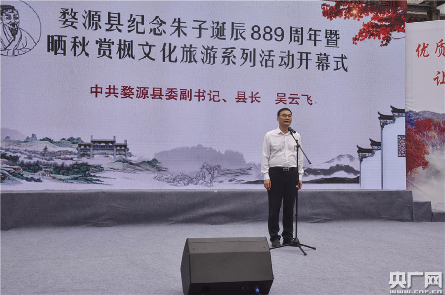 婺源縣委副書記、縣長吳云飛宣布婺源縣紀(jì)念朱子誕辰889周年暨曬秋賞楓文化旅游系列活動(dòng)開幕