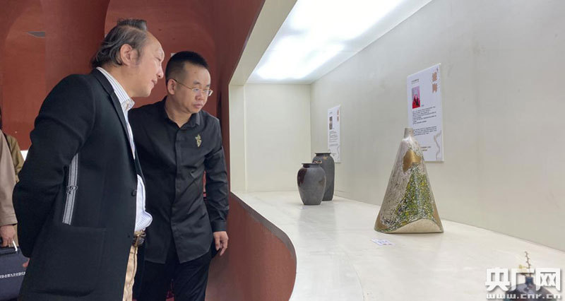 中國美協(xié)工藝美術(shù)委員會委員、江西省美協(xié)副主席支林在參觀展覽(央廣網(wǎng)發(fā) 通訊員提供)