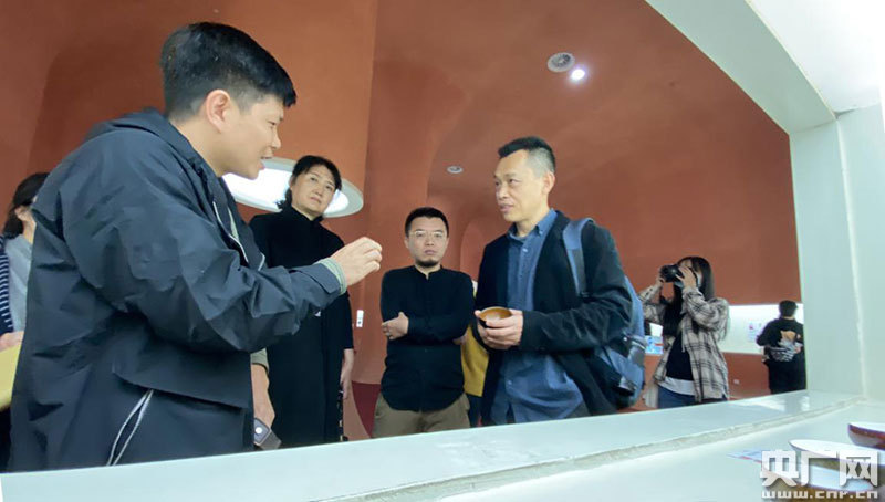 江西省美術(shù)館館長、江西畫院院長雷子人等驗(yàn)收專家組成員在了解項(xiàng)目實(shí)施情況(央廣網(wǎng)發(fā) 通訊員提供)