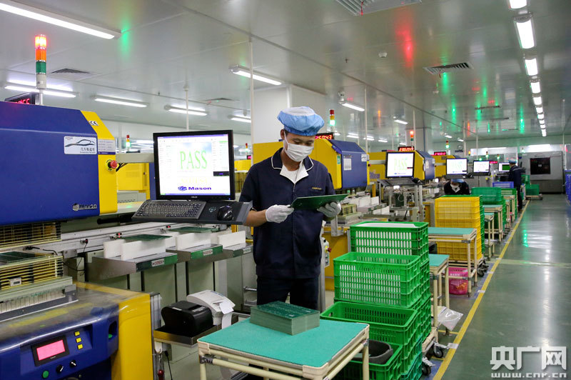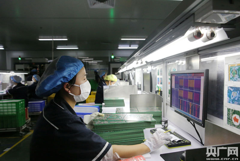 3月26日,江西省吉安市吉水縣工業(yè)園區(qū),專業(yè)從事線路板外貿(mào)訂單生產(chǎn)的江西景旺精密電路有限公司生產(chǎn)車間,工人正在高度自動化生產(chǎn)線上進行生產(chǎn)。