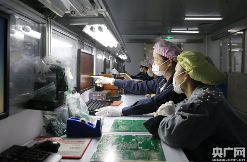 工人正在高度自動化生產(chǎn)線上進行生產(chǎn)
