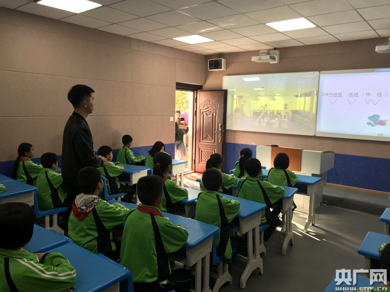 石人鄉(xiāng)小學與上饒市重點小學同步上音樂課(央廣網(wǎng)發(fā) 于子敬攝)