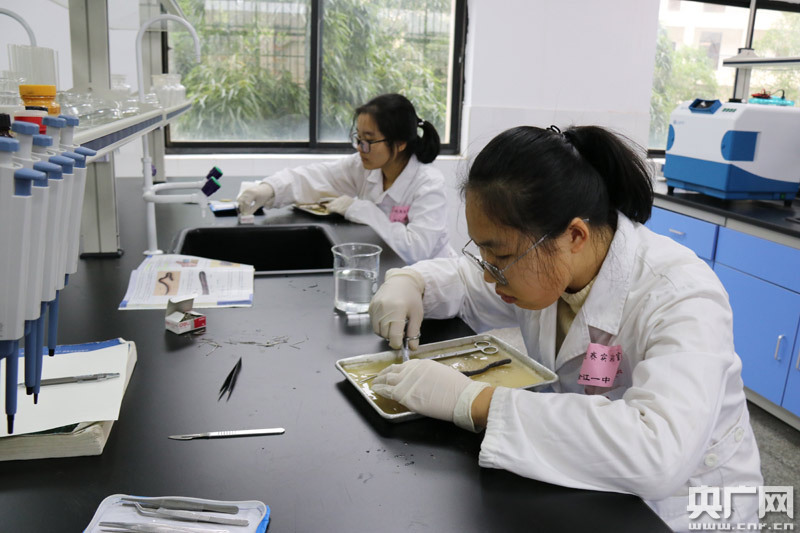 生物興趣小組開展蚯蚓解剖實驗(央廣網(wǎng)發(fā) 于子敬攝)