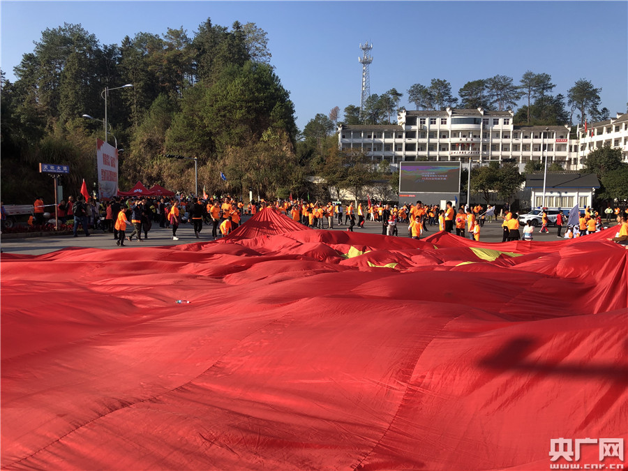 迷你組的終點(diǎn)站,選手們舉起一巨型國(guó)旗,高呼祖國(guó)萬歲