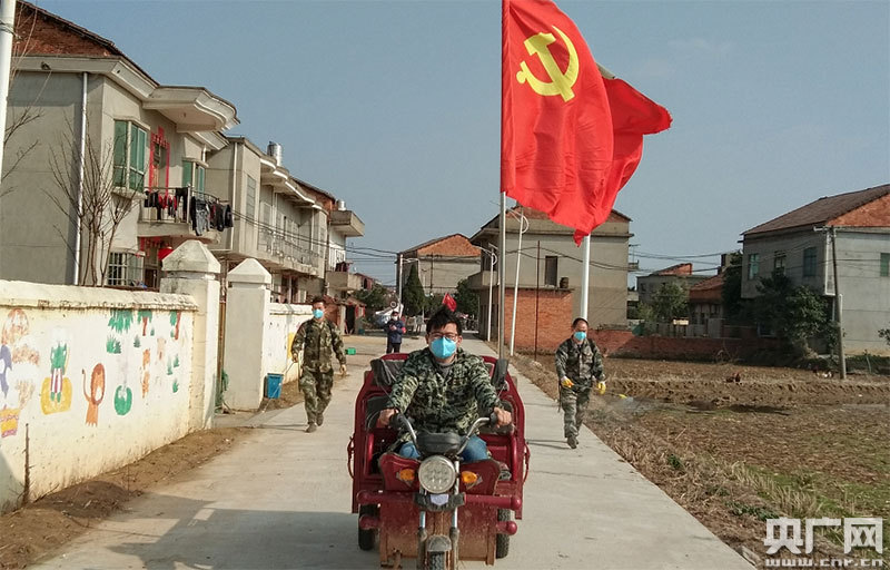 一身迷彩服、一副口罩、一輛三輪車、一面黨旗、一個消毒液噴灑器,外加一個大喇叭,今年的春節(jié),陳東華的新春裝備格外不一樣。從1月28日(大年初四)開始,陳東華每天帶著24歲的侄子陳宇和21歲的侄子陳杰走在塘南鎮(zhèn)的大街小巷噴灑消毒液。