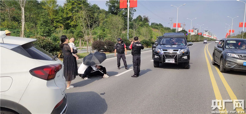 看到小女孩額頭摔破出血,陳芳撥打120急救電話。由于當(dāng)時(shí)太陽(yáng)高照,陳芳抱著孩子護(hù)在小女孩身邊,讓丈夫從車(chē)上拿了一把傘,給小女孩遮陽(yáng)。