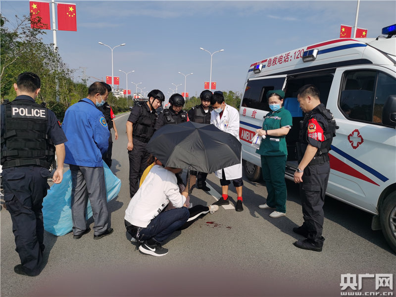 執(zhí)勤路過(guò)此地的吳小勇等幾名特巡警看到后,用人墻和警車(chē)為受傷女孩圍了一道保護(hù)屏障。等120救護(hù)車(chē)趕到后,幾名特巡警和醫(yī)護(hù)人員一起把受傷女孩抬到了救護(hù)車(chē)上。