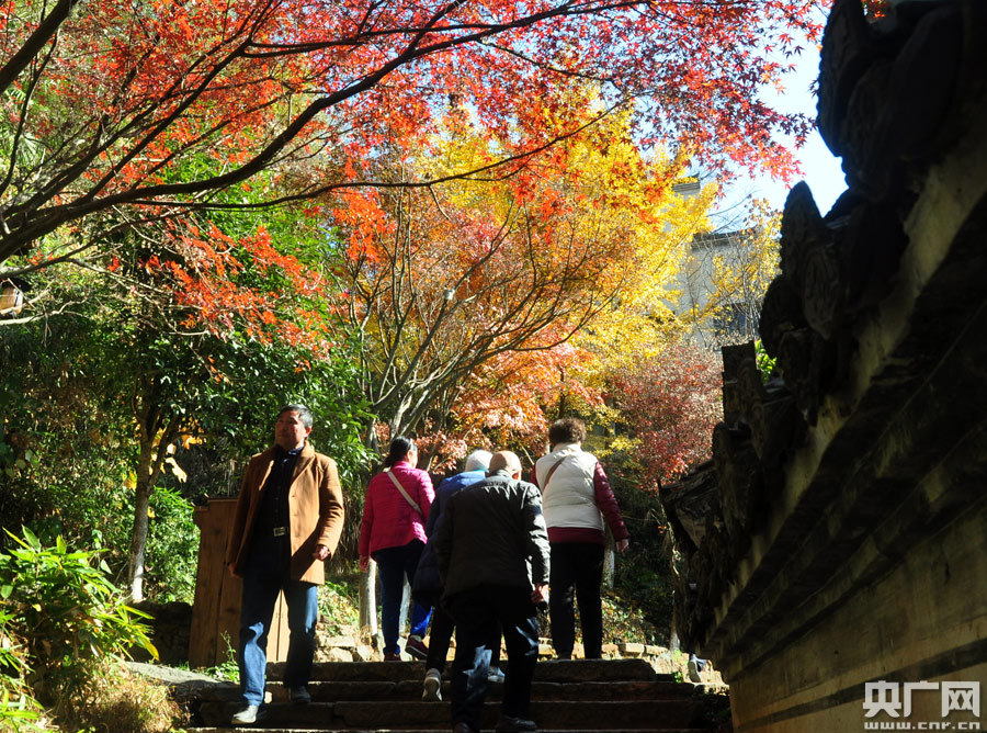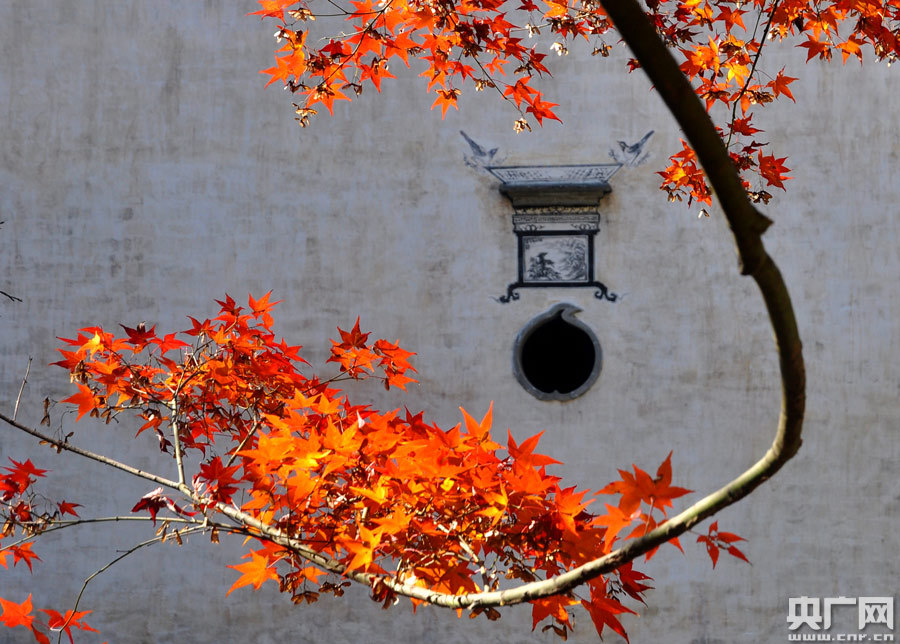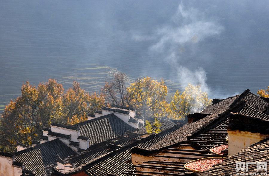 進入大雪節(jié)氣,江西省婺源縣江灣鎮(zhèn)篁嶺村紅楓、銀杏與徽派民居交相輝映,色彩斑斕的曬秋人家掩映在濃濃的秋色之中,構成一幅美麗多彩的山村畫卷。近六百歷史的篁嶺屬典型山居村落,上百棟徽派古民居圍繞水口呈扇形梯狀錯落排布,楓葉紅得比附近村莊晚。(央廣網(wǎng)發(fā) 通訊員 胡敦煌 攝)