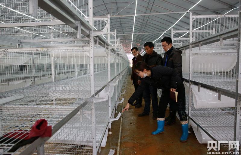 劉旸瑒和工作隊隊員一起查看新的養(yǎng)雞大棚安裝情況