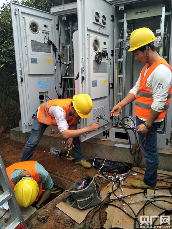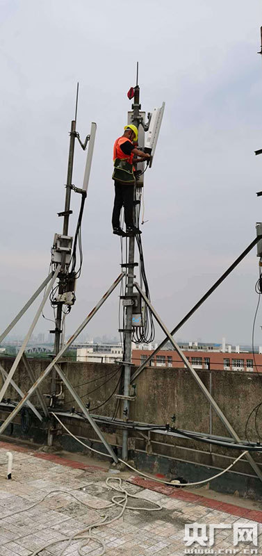 工作人員檢查5G網(wǎng)絡(luò)通訊基站(央廣網(wǎng)發(fā) 通訊員提供)