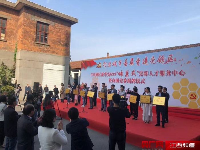 央廣網(wǎng)南昌10月18日消息(通訊員鐘顥)10月18日上午,江西省首家“黨建+人才”服務(wù)中心——新華安699“蜂巢式”黨群人才服務(wù)中心在青山湖區(qū)699文化創(chuàng)意產(chǎn)業(yè)園正式揭牌成立。