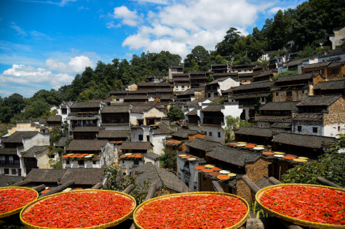 從立秋開始,篁嶺古村將進(jìn)入一年紅火的曬秋季,隨著農(nóng)作物的成熟,曬秋景觀也愈發(fā)壯觀,色彩愈發(fā)豐富,可持續(xù)到冬至?xí)r節(jié)。(圖文/方華彬)