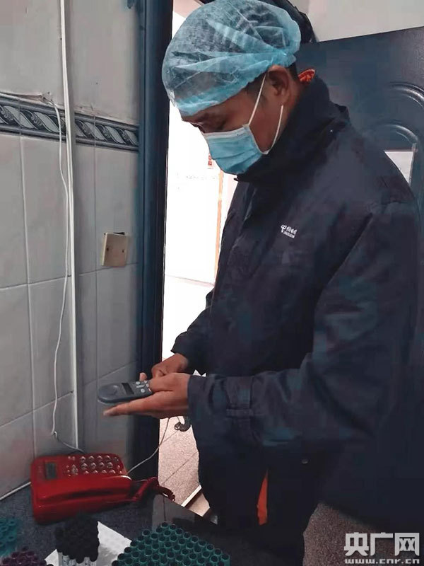 圖為正在隔離區(qū)安裝網(wǎng)絡(luò)和電話的共產(chǎn)黨員鄭國(guó)恩