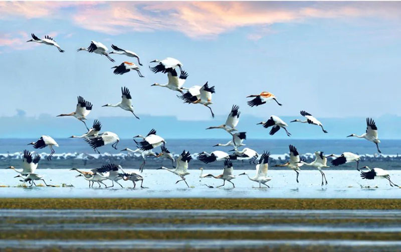白鶴是一種極度瀕危物種,全球僅有4000只左右,有鳥類“活化石”之譽。白鶴在中國寓意延年益壽、吉祥如意,是江西“省鳥”,亦是江西生態(tài)環(huán)境優(yōu)良的代名詞。