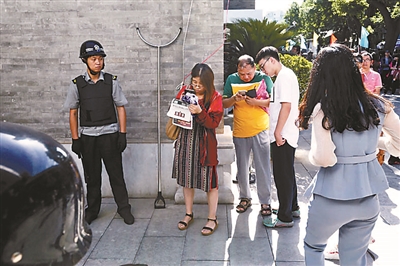 據(jù)了解,這位考生在進(jìn)考場(chǎng)前發(fā)現(xiàn)自己忘帶準(zhǔn)考證了,正不知所措。在老師指點(diǎn)下,該考生在跟學(xué)校說明情況之后,拿著家長(zhǎng)給其傳來的準(zhǔn)考證照片,與考點(diǎn)進(jìn)行信息核對(duì)且得到領(lǐng)隊(duì)老師證明之后,順利進(jìn)入了考場(chǎng)。8點(diǎn)40分,這位考生家長(zhǎng)將考生準(zhǔn)考證送至考點(diǎn)外,保安人員隨后將準(zhǔn)考證送進(jìn)了考場(chǎng)。攝影/本報(bào)記者 郝羿