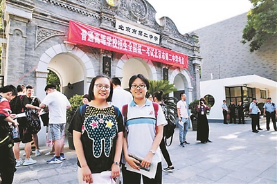 本報(bào)訊(記者 劉婧)在北京四中門口,一名穿著印有“北京四中”的紅色T恤衫,舉著“四中必勝”牌子的學(xué)生站在學(xué)校門口,迎接考生入場(chǎng)。他是北京四中道元班的學(xué)生,3月底的時(shí)候他已經(jīng)拿到美國(guó)大學(xué)的offer。