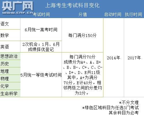 據(jù)悉,2017年起,上?忌鷮⒉扇3+3模式,即高考3門學(xué)業(yè)等級考3門累加作為最好報考高校的總成績,學(xué)生可從思想政治、歷史、地理、物理、化學(xué)、生命科學(xué)等6門學(xué)科任選3門參加高考。