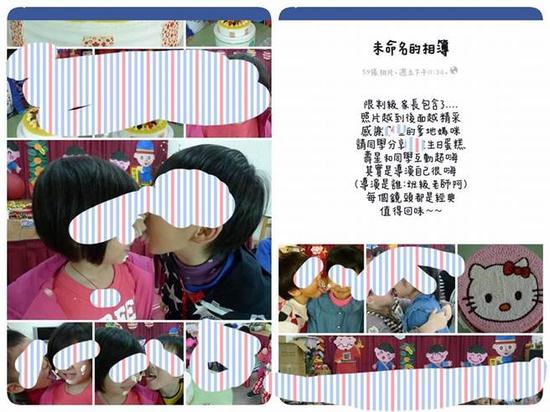 幼兒園臉書(shū)也被網(wǎng)友翻出,發(fā)現(xiàn)這種舌舔奶油慶生不只一次,且照片都設(shè)公開(kāi)。還有網(wǎng)友貼出一位男童生日,身邊簇?fù)碇姸嗯瑢W(xué),臉上都是紅色口紅印的照片。