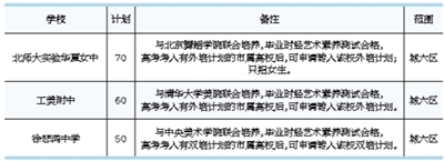 從公布的首批“1+3”培養(yǎng)模式改革試點(diǎn)學(xué)校及今年招生計(jì)劃中可以看到,今年“1+3”培養(yǎng)模式改革試點(diǎn)規(guī)模并不大,參與試點(diǎn)的學(xué)校分為兩類(lèi)。在市級(jí)統(tǒng)籌類(lèi)學(xué)校部分,其中涉及清華附中、北大附中等3所優(yōu)質(zhì)高中新校區(qū)以及工美附中等3所市級(jí)“統(tǒng)籌三”學(xué)校。
