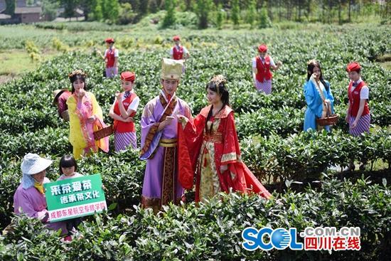 四川在線消息(四川在線記者 楊德)最美人間四月天,采茶賞花春色俏。28日,雅安蒙頂山的皇茶貢茶地里,一群穿著唐裝、空姐服——畢業(yè)于成都東星航空專(zhuān)修學(xué)院的空姐,和當(dāng)?shù)氐牟柁r(nóng)進(jìn)行了一次“親密接觸”,學(xué)采茶,感受茶文化的魅力。體驗(yàn)勞動(dòng)的艱辛,培養(yǎng)以后在飛行工作崗位上的抗壓力和忍耐力。