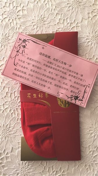 老師給六年級(jí)孩子送紅襪子
