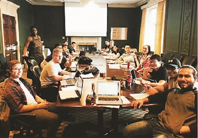 熊駿(右三)與自己參加的經(jīng)數(shù)社團(tuán)的朋友們?yōu)槠谀⿵?fù)習(xí)考試做準(zhǔn)備。