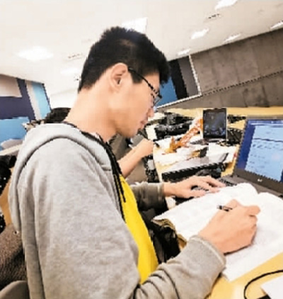 姚澤平出國(guó)是為了學(xué)習(xí)知識(shí),他給自己制訂了總的規(guī)劃和時(shí)間表。圖為他在自習(xí)室專注地學(xué)習(xí)。