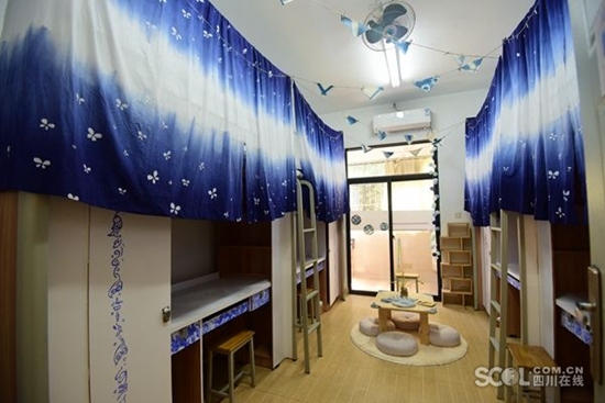 “整個流程和商業(yè)酒店幾乎沒有差別,感覺很規(guī)范,也很安全。而且房間很有特色,我很喜歡。”小馬入住的房間是羌族風格,學生公寓的設施搭配民族風情的裝飾,這種與眾不同的體驗讓他感覺很新奇。