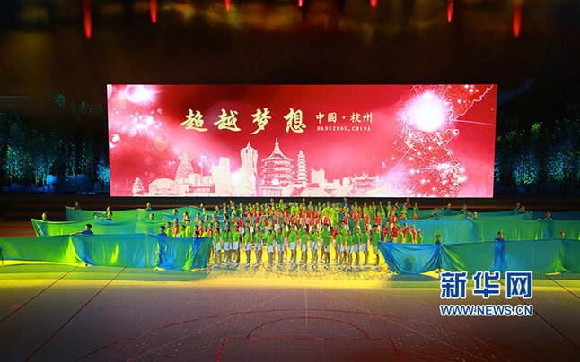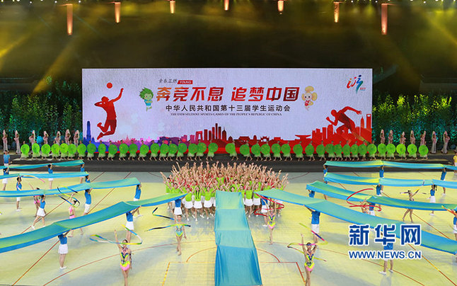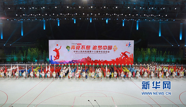 新華網(wǎng)杭州9月4日電 3日晚,第十三屆全國學(xué)生運動會在杭州黃龍體育館拉開帷幕。