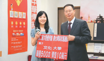 10月11日,在“弘揚中華傳統(tǒng)文化、促進(jìn)兩岸文化交流”的會標(biāo)下,大陸出版的各類書籍散發(fā)出滿室書香,“第二屆大陸優(yōu)秀圖書臺灣高校巡回展”在臺北宣布開幕。
