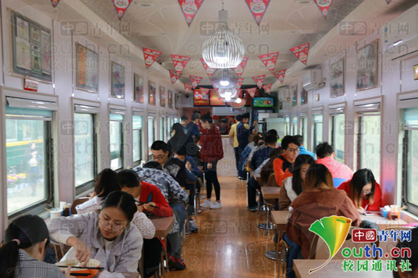 該校鐘同學(xué)告訴記者,學(xué)生們都很喜歡到“火車餐廳”用餐,差不多一放學(xué)每個(gè)車廂里都會(huì)滿人,“節(jié)假日的人更多,有很多家長會(huì)帶著小孩子來參觀和用餐。”