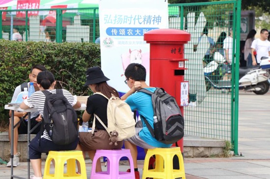 湖南農(nóng)業(yè)大學(xué)為新生準(zhǔn)備“時(shí)光郵筒”,為學(xué)生保管寫給自己的信。湖南農(nóng)業(yè)大學(xué)新媒體中心 張瑤/攝