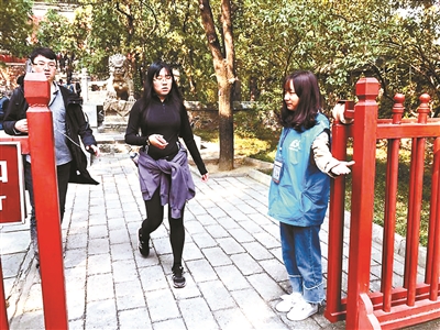 大學生志愿者在香山公園疏導游客,維護游園秩序供圖/香山公園管理處