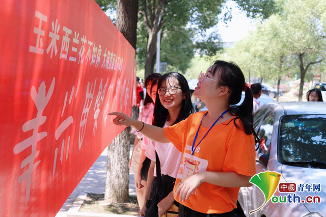 鄭文杰是該校教育學(xué)院美術(shù)教育專業(yè)大三學(xué)生,剛開學(xué)一進(jìn)校門,他就被校門口“甲骨文橫幅”吸引住了。因?yàn)橹耙矝]有看到過類似的橫幅,所以他特意關(guān)注了一下。