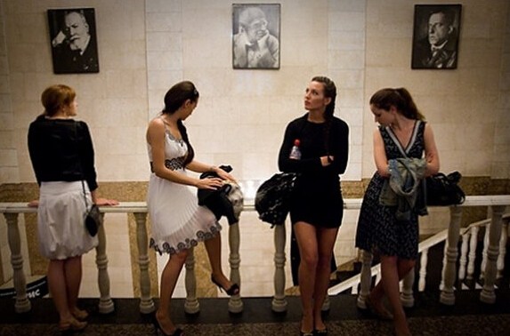 實拍國外藝考后臺的現(xiàn)場:女孩的明星夢女孩兒們?yōu)榱藢崿F(xiàn)自己的明星夢想,不遠千里來到了莫斯科劇院考試學習。莫斯科劇院學?赡苄枰芏嗟腻X,競爭力也很大。
