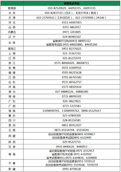 教育部和各省份開(kāi)通2016年高考舉報(bào)電話