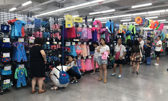 “來的時候沒打算買東西,逛著逛著,看到有些商品在搞活動,還挺劃算,考慮到以后也需要用,就買了!鄙蜿柺忻駞莿P一家三口正準(zhǔn)備回家,吳太太指著購物車說,“一下又買了100多塊錢的東西!